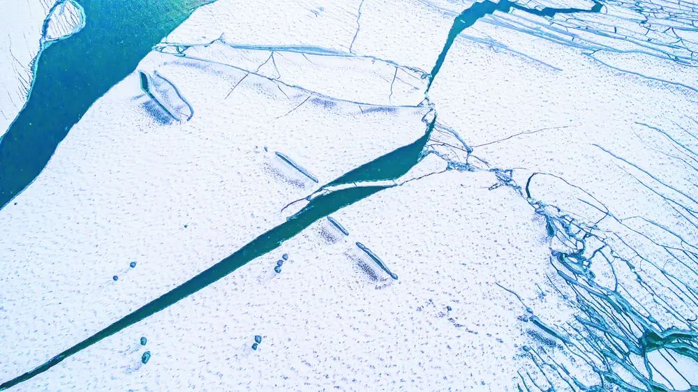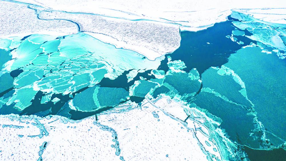 位于青海省果洛藏族自治州玛多县境内,海拔4000多米的冬格措纳湖,湖水呈深蓝,意为“黑海”,又因湖周围千山环抱,也意为“一千座山围成的湖”。湖东西长45公里,西北宽10公里,面积450平方公里,水深10米。隆冬时节,厚度达30-60厘米的冰层覆盖湖面,形成犹如人间仙境般的壮观冬日景象。( 李友崇 摄)