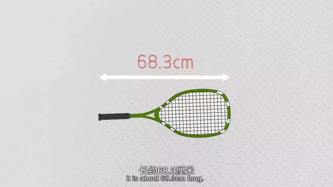 壁球拍外形上与羽毛球拍相似,大小介于网球拍和羽毛球拍之间,长约68.3厘米。
