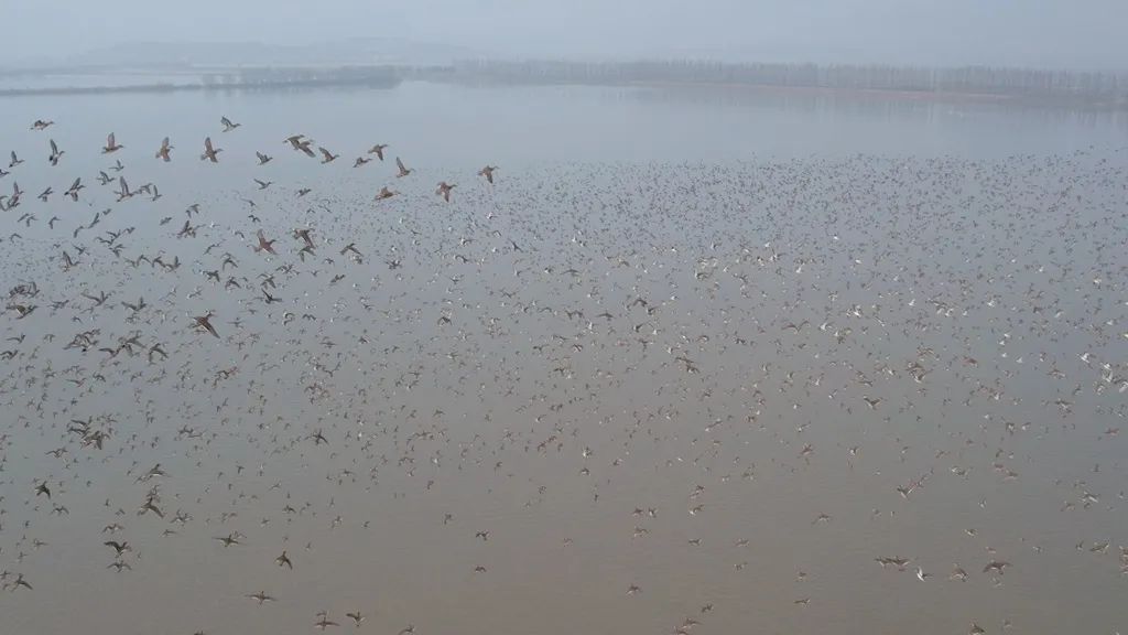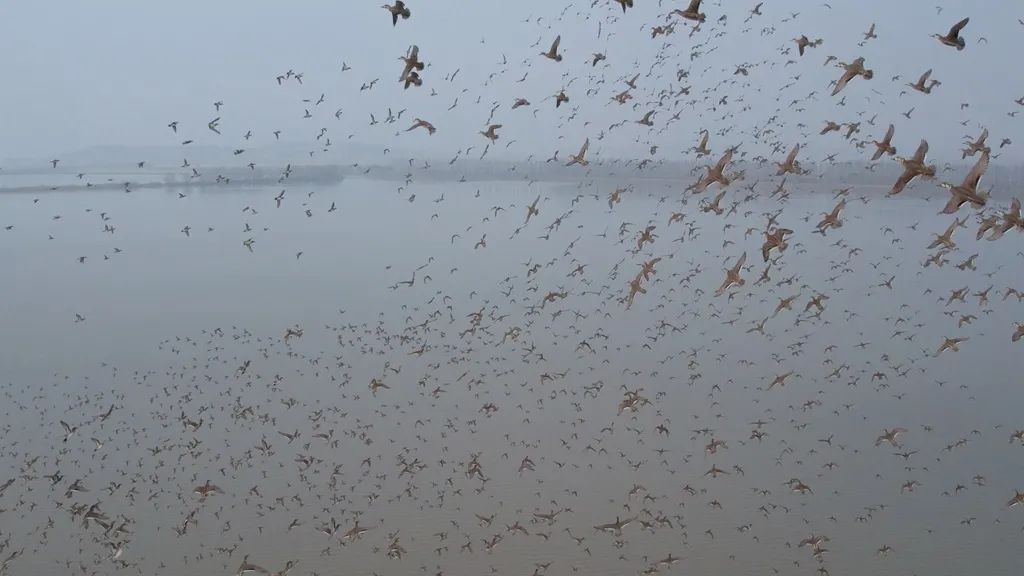 2022年1月13日,位于安徽省铜陵市郊区陈瑶湖镇境内的陈瑶湖湿地,万千候鸟翔集,或静卧湖面,或展翅高飞,呈现一幅自然和谐的生态美景。据悉,陈瑶湖湿地为安徽省级湿地保护区,拥有水域面积2.8万亩,水产资源丰富,生态环境良好。每年11月至次年3月,北方候鸟向南迁徙,数以万计的候鸟来到各湿地停歇、觅食、越冬。近年来,当地坚持生态绿色发展理念,统筹推进山水林田湖草系统治理,生态环境得到很大改善,为野生动植物生活、栖息提供良好的自然条件。