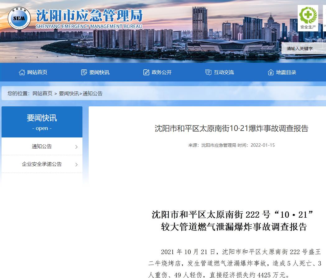经调查认定,沈阳市和平区太原南街222号“10·21”较大管道燃气泄漏爆炸事故是一起较大生产安全责任事故。