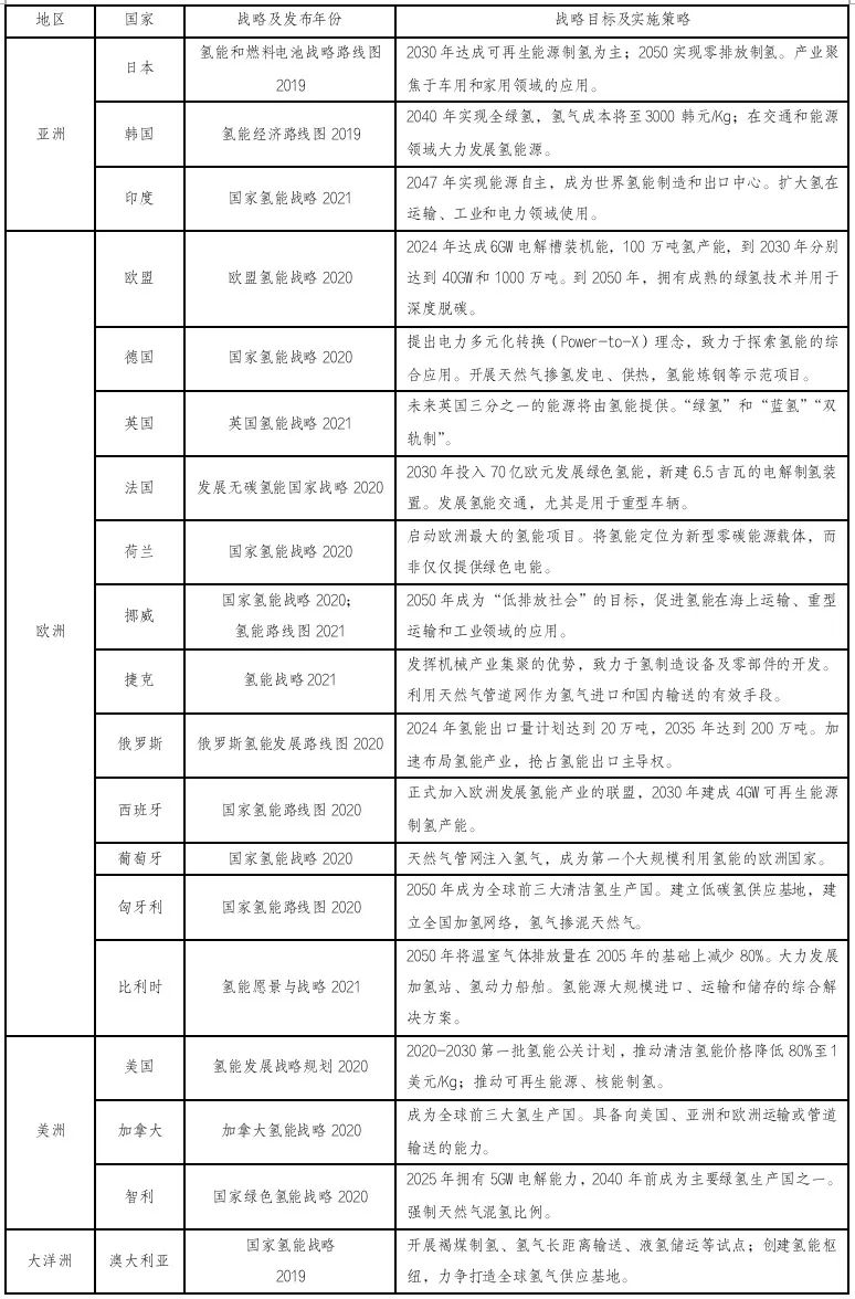 过去两年,越来越多的国家将发展氢能源产业提升到国家(地区)战略高度。总体来说,发达国家的氢能发展战略的背景大都基于《巴黎协定》,但是不同国家发展氢能的出发点和侧重点因国情而异。