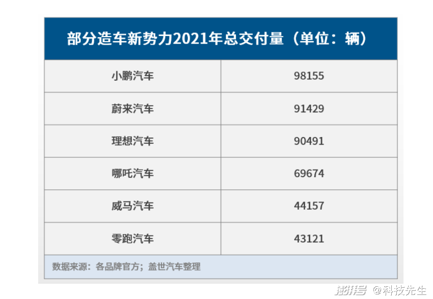 在2021年全年,小鹏汽车全年销量达到了98182辆,是2020年交付量的3.6倍,也是最接近10万大关的新势力;蔚来的全年销量数据仍然亮眼,全年销量达到91429辆,处于造车新势力销量排名第三名,同比增长109.1%;理想汽车仅凭借一款理想one车型就在2021年的最后一个月实现交付14,087辆,完成连续两个月超万辆的水平,全年销量达到了90491辆,同比增长177.4%。