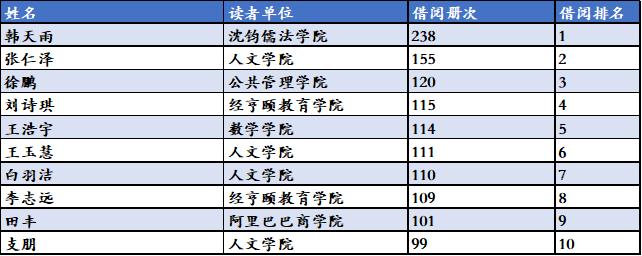 2021年度学生借阅达人Top10
