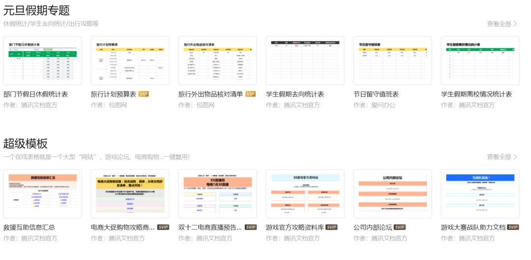 因此,在疫情、河南暴雨、“双十一”等大型公共事件中,腾讯文档频频出圈。刺猬公社也发现,在腾讯文档官网上,新冠疫苗接种者信息登记、救援互助信息汇总,电商大促购物攻略等模板,服务着用户在不同场景下的使用需求。