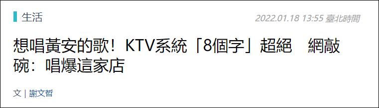 原标题:《"封杀"黄安?岛内一KTV怒删7首歌》