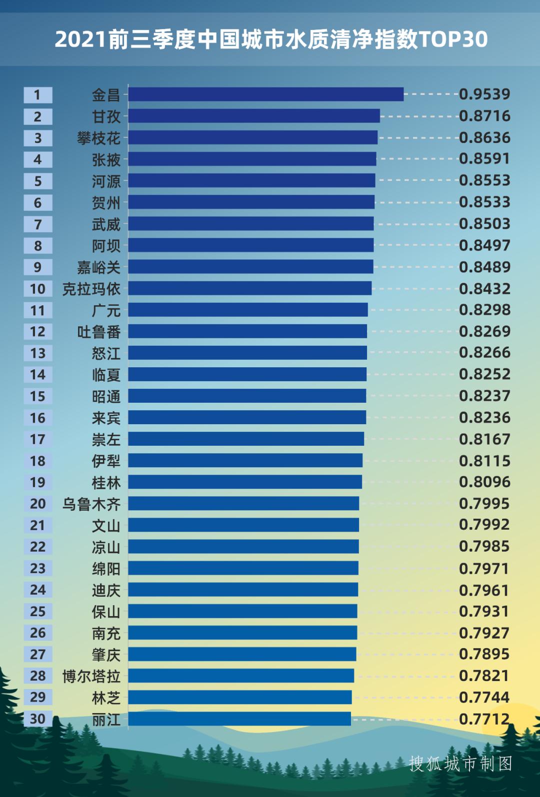 2021前三季度中国城市水质清净指数TOP30/搜狐城市制图