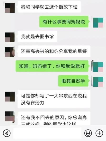 期间妈妈不断地安慰女儿说,高三确实压力大、你要多运动、多放松自己……