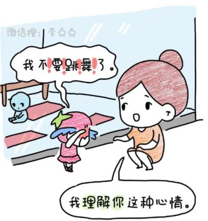 有一次娃在跳舞的时候,可能老师说她了,她闹情绪,哭着说再也不跳舞了。