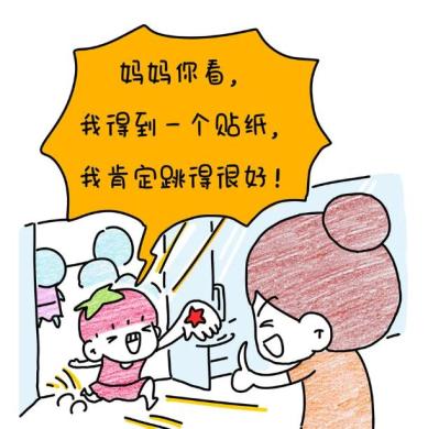 后来,她跳得很开心,课程结束之后,她开心地跑出来,给我展示了老师送给每个小朋友的小星星贴纸。