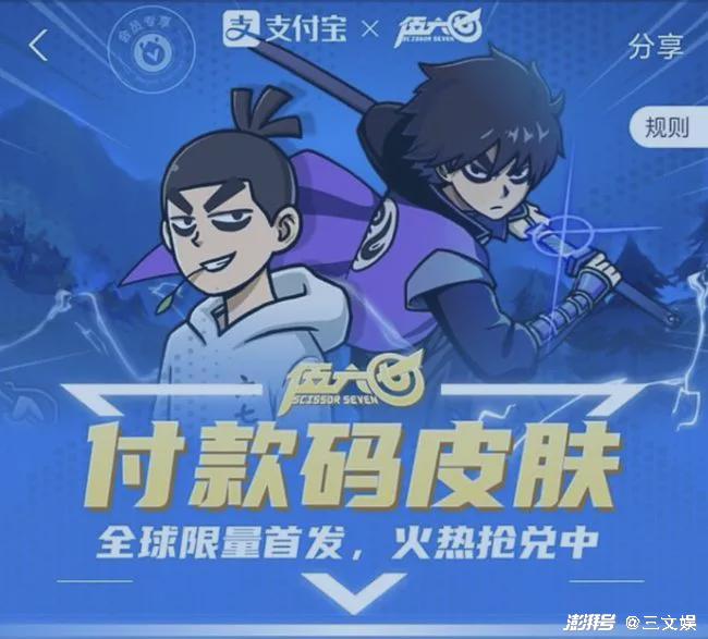 这次推出的《伍六七》支付宝付款皮肤共两款,每款8000件,分两次上线每次上架4000件,每件发行价格为“9.9元+10个支付宝积分”。2021年12月,这两款皮肤进入可转让日,咸鱼二手交易价格普遍涨至60元。半年,翻了六倍。