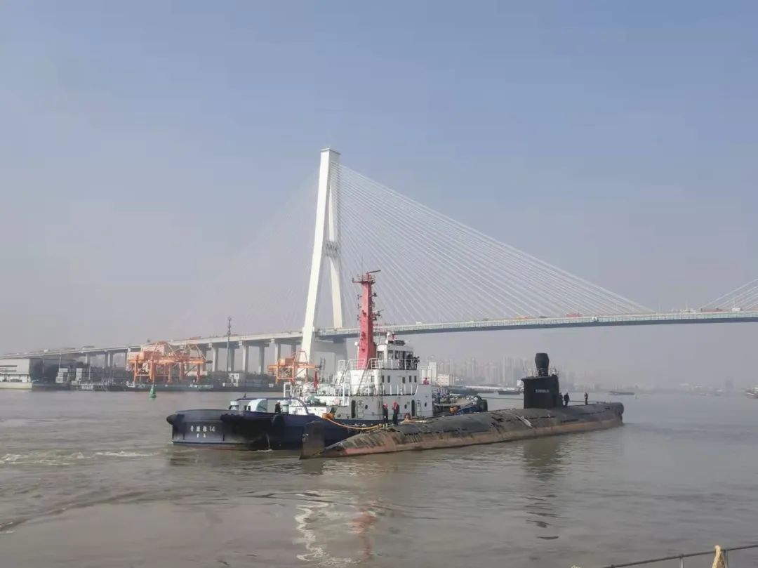 项目组利用全年有效的潮汐窗口期实施拖船入坞,潜艇于当日上午11点30分从立新船厂出发,由拖轮牵引至黄浦滨江3号船坞,期间,项目组与海军相关单位通力合作,保持紧密沟通,互相支持,确保潜艇入坞作业过程中人员、船舶及设备的安全。现场还解决了船坞长时间荒废坞门开启困难等复杂问题,在各方配合下成功将潜艇引入并实现落墩,即将开启修缮工作,修缮完成后,将打造成符合上海国际大都市地位、在国内乃至国际上都有影响力的退役舰艇展示平台,向社会公众开放,发挥爱国主义教育、国防教育功能。