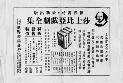 1947年,世界书局的《莎士比亚戏剧全集》一至三辑终于出版。当时的宣传页文案称:“原著光芒万丈,世界文学瑰宝,译文优美流利,保持原作神韵。”而朱生豪的妻子宋清如女士拿到第一本新书时,“不禁百感交集,热泪纵横”。