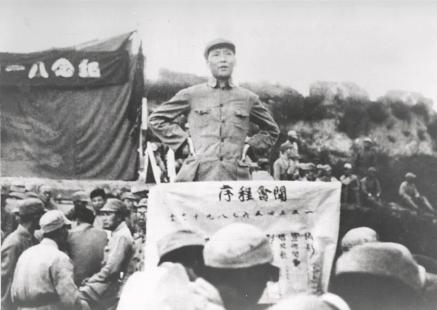 1938年8月1日,毛泽东在抗大四期学员毕业大会上讲话。