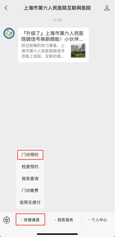 第一步:关注“上海市第六人民医院互联网医院”公众号;