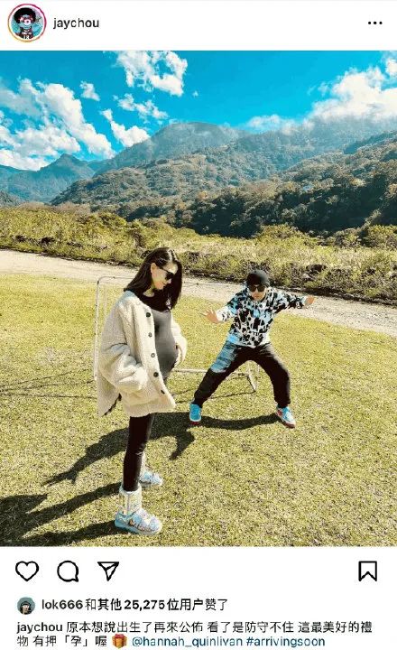 随后周杰伦就在社交网上发文承认昆凌怀三胎:“原本想说出生了再来公布,看了是防守不住,这最美好的礼物,有押‘孕’喔。”