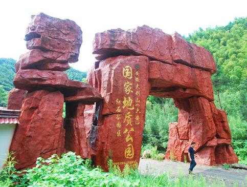 红石谷内山体受火山运动影响,遗留着罕见的古洞穴奇观,是大别山绝有的红石景观群,是国内少有的“红石”景观区。