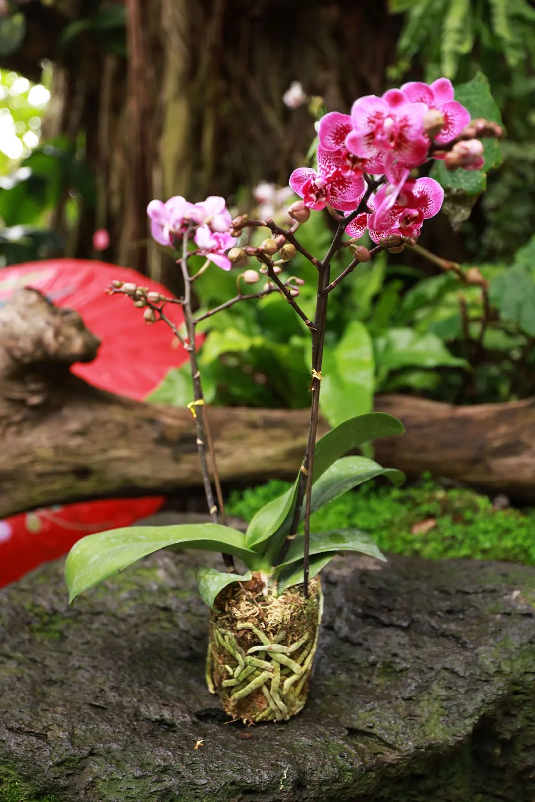 与通常所说的国兰(为地生兰)不同,蝴蝶兰是一种生活在热带的附生兰。附生的意思就是说它不长在泥土里,而是附着在植物的树干上或者其他物体上生长。在亚洲热带低海拔的丛林树干上,蝴蝶兰以它粗壮的气生根附着于其上生长。人工栽培的条件下,如果想要蝴蝶兰长得好,栽培介质同样要以疏松透气的材料为主,同时保证足够的空气湿度,同时,根据不同的生长阶段,还需要人工施加所需的营养。