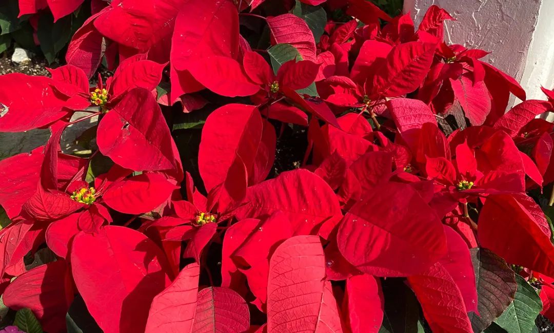 其实,一品红的叶子在花期到来之前一直是绿色的,等到开花时期才会逐渐转变成红色,它这样做的目的是让最靠近花序的叶片起到吸引传粉动物的作用,而真正的花瓣却极度简化。一品红用几片不变的叶子代替了为每朵花单独制造花瓣的工作,是不是特别“简单粗暴”,但是细想一下却又“经济实惠”?