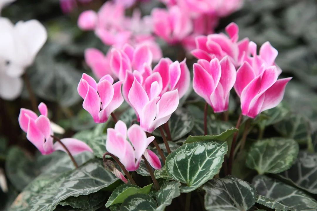 仙客来株型美观、花朵繁茂、花色艳丽,有的种类还具有甜蜜的香味,备受广大市民的喜爱,作为热门的年宵花卉,人们常常会购买一盆点缀花架、几案、书桌等处。仙客来最吸引人的地方,在于它别致的花形:它的花瓣在尚未开放时与其他花朵没有什么差别,等开放后却会强烈反折90-180度,变成一个“僧帽”,又如一只只可爱的兔耳,因此,仙客来又被形象地唤作又名兔耳花、翻瓣莲。
