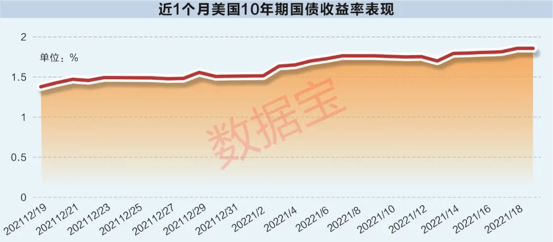 除此之外,2021年12月以来,美债收益率快速上行。数据显示,去年底以来,10年期美国国债收益率已经上涨了近30个基点,反映出市场参与者开始且以更快速度消化升息预期。