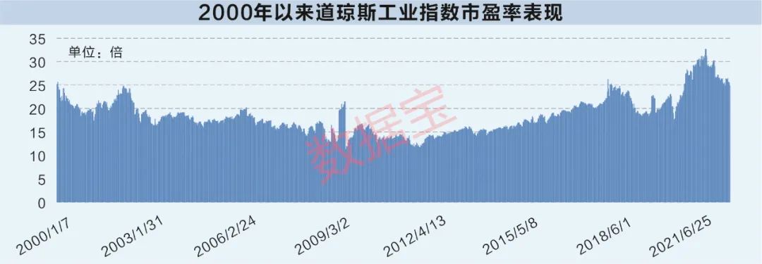 数据宝统计,第三轮加息周期首次加息日,道琼斯工业指数滚动市盈率18.36倍,居于2000年以来市盈率分位数的74%;纳斯达克指数滚动市盈率31.84倍,居于2000年以来市盈率分位数的41.46%。最新数据显示,道指市盈率为24.87倍,居于2000年以来市盈率分位数的92.92%;纳指市盈率36.01倍,居于2000年以来市盈率分位数的56.74%。