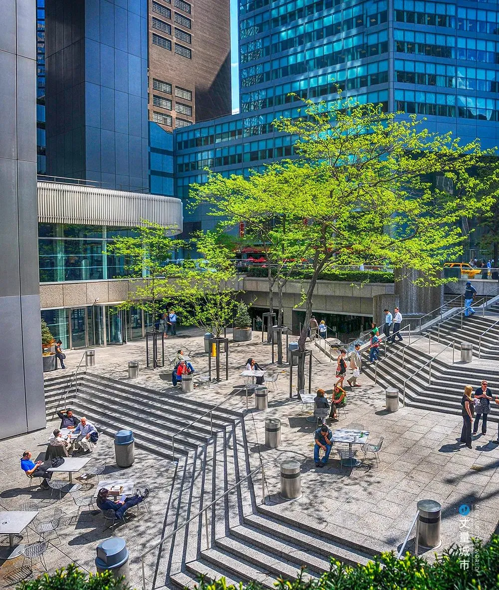 花旗集团中心将原本私有的下沉广场,改为市民交流休憩场所。广场为市民提供19张固定的桌子和76把可移动的座椅,全天对外开放。
