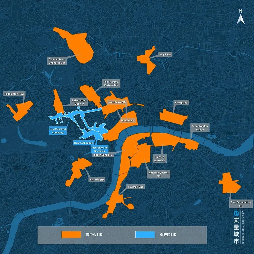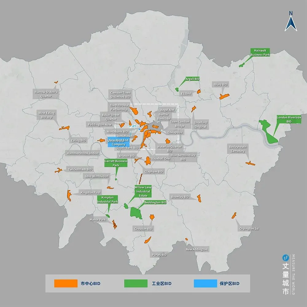 据《2016年英国BID调查统计数据报告》统计显示,大伦敦的BID商业促进区已达到58个。
