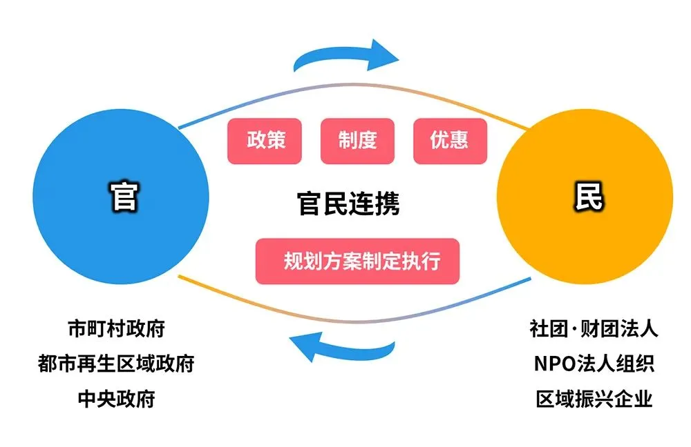 2002年,日本颁布《都市再生特别措置法》,法案中提出通过官民连携模式,推动、管理公共空间的复兴,带动城市中心的再生。