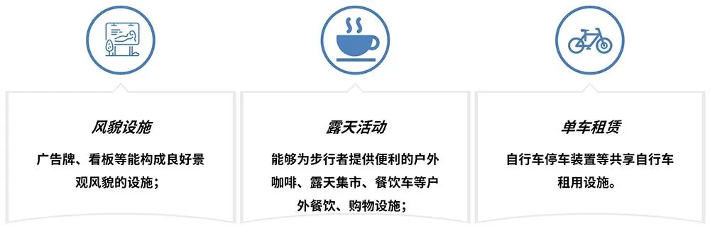 重点级街道沿线,通过设计提升步行环境品质,进而促进商业交易。