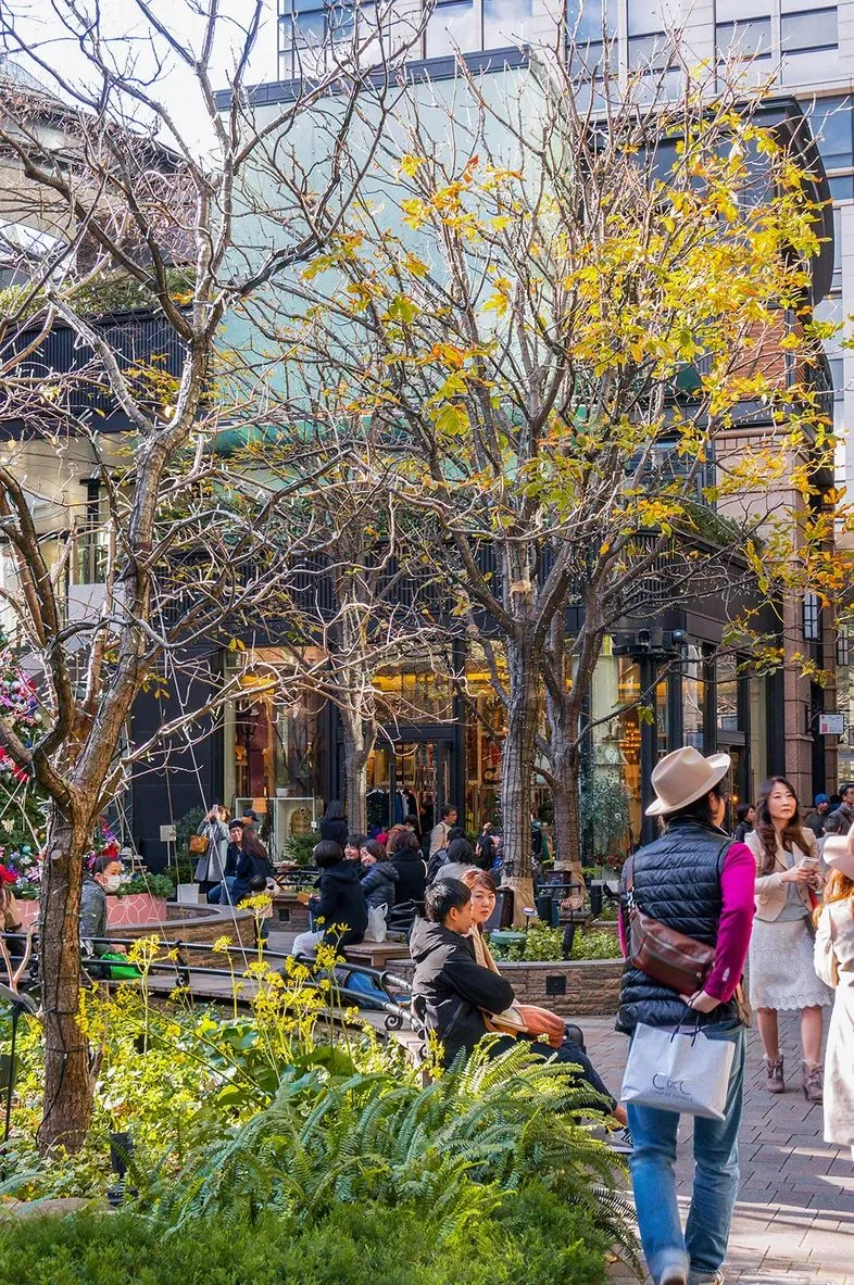 公共空间舒适度的提升,为建筑临街面从商务到商业的转型,提供了必要条件。如重塑后的丸之内仲大街,集聚了64家商店和16家咖啡与休闲餐厅,为商务区注入了时尚活力。