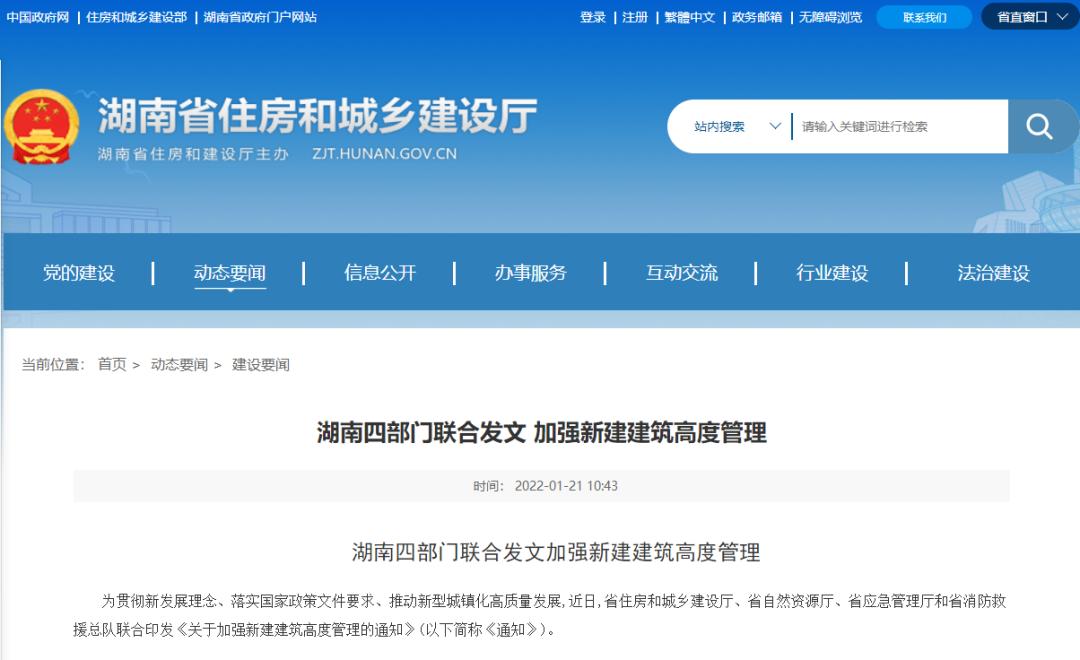 为贯彻新发展理念、落实国家政策文件要求、推动新型城镇化高质量发展,近日,省住房和城乡建设厅、省自然资源厅、省应急管理厅和省消防救援总队联合印发《关于加强新建建筑高度管理的通知》(以下简称《通知》)。