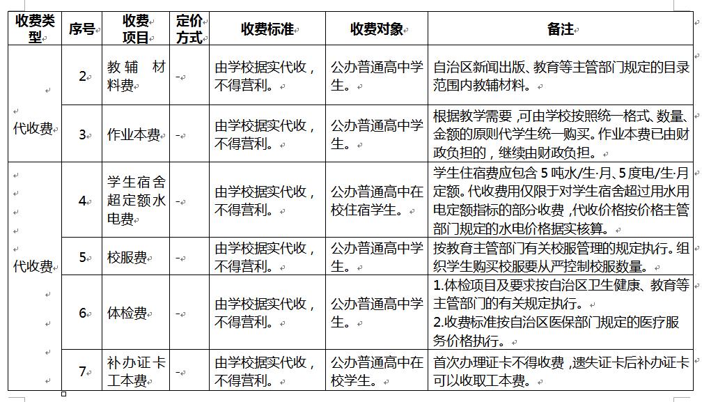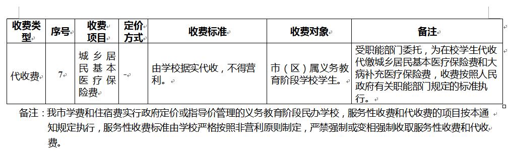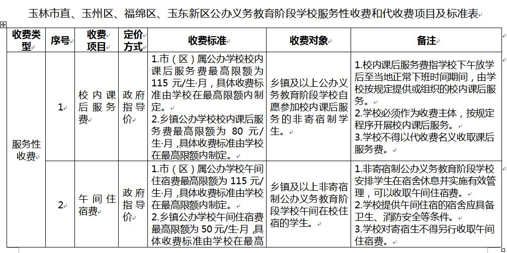我市市直及市辖区公办义务教育阶段学校、公办普通高中学校服务性收费和代收费具体项目及收费标准详见下图。