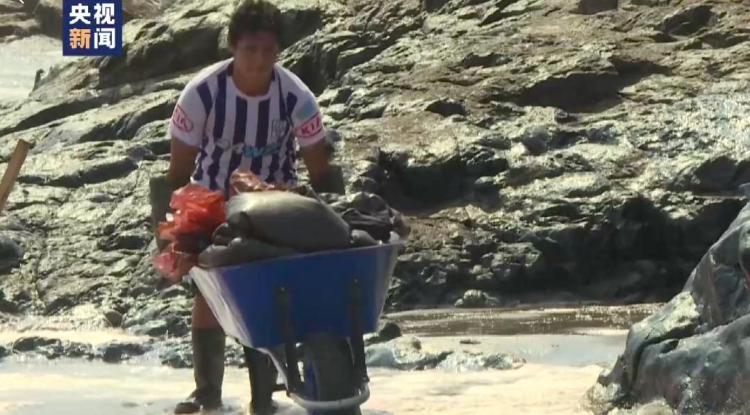●20日,秘鲁政府宣布进入环境紧急状态,缘由是汤加火山喷发掀起的巨浪导致发生石油泄漏事故,污染秘鲁21处海滩。(来源:央视新闻客户端)
