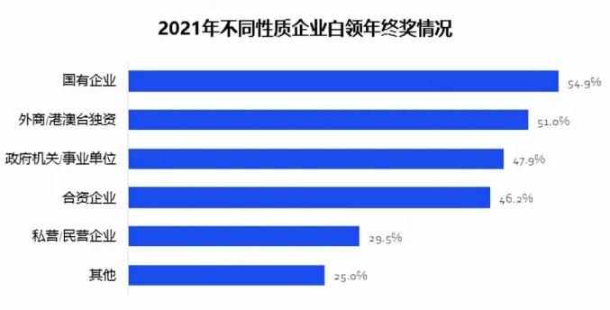 超半数国企白领有年终奖,比例是民企的近2倍,能源、金融等传统行业白领年终奖情况更好,其中文体教育排名垫底。