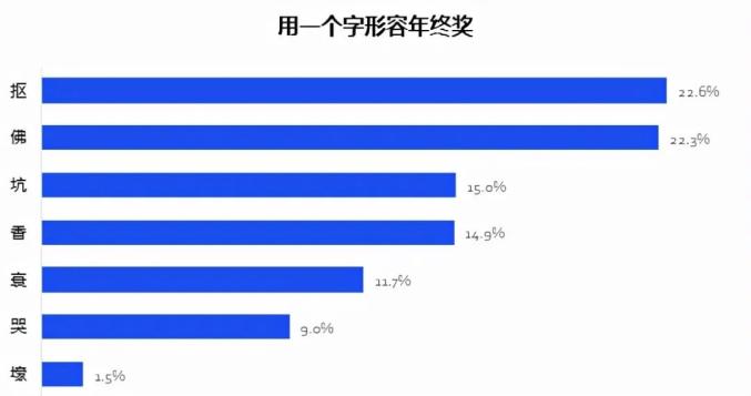如果用一个词来总结年终奖,2021年22.6%的白领用“抠”来形容;其次是佛(22.3%)、坑(15.0%)。在2021获得年终奖的白领比例有所增长的情况下,14.9%的白领以“香”来概括,也有1.5%的白领选择“壕”。