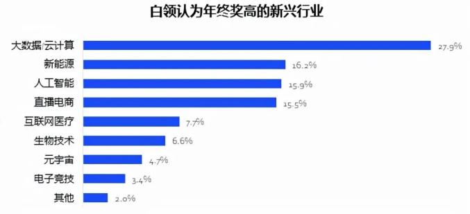 近三成白领认为大数据/云计算年终奖最高,元宇宙暂时未被看好。