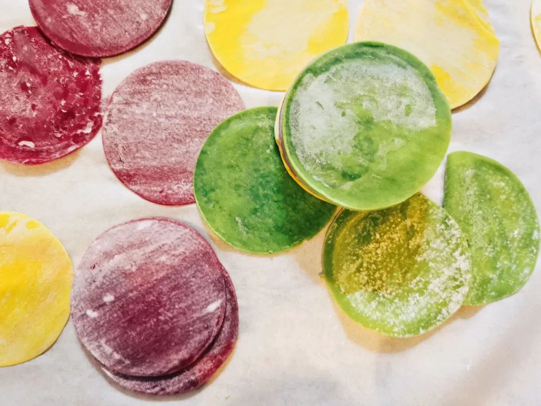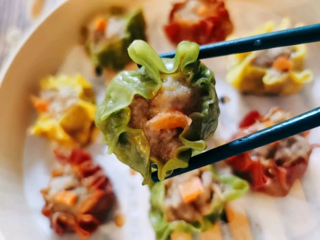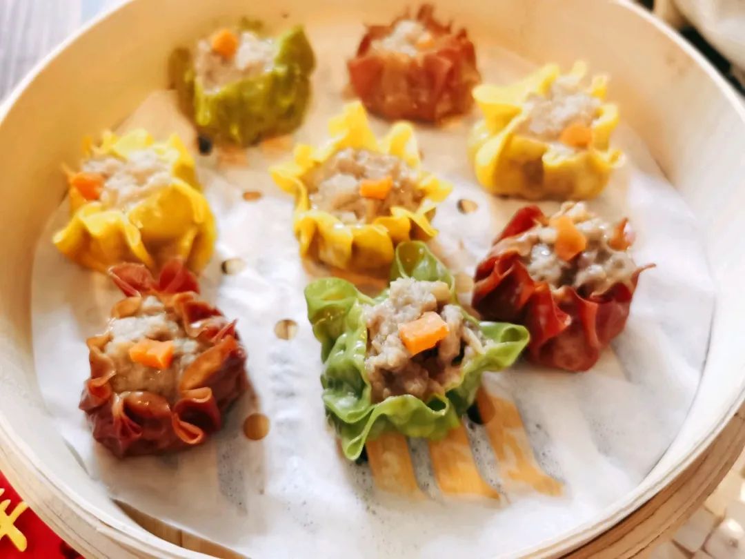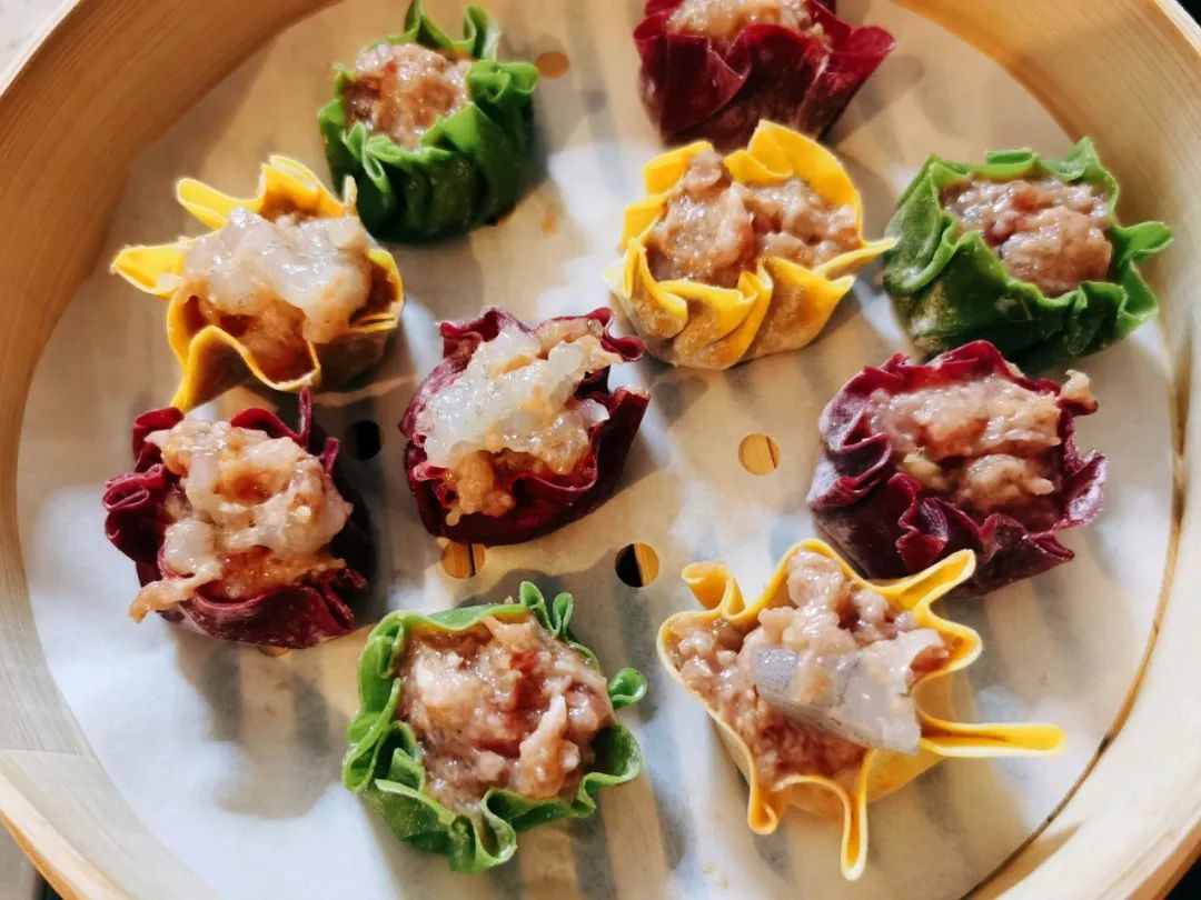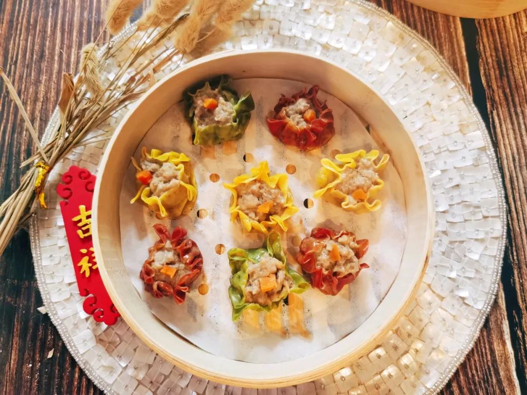 如果不怕麻烦的话,也可以自己制作彩色烧麦皮。