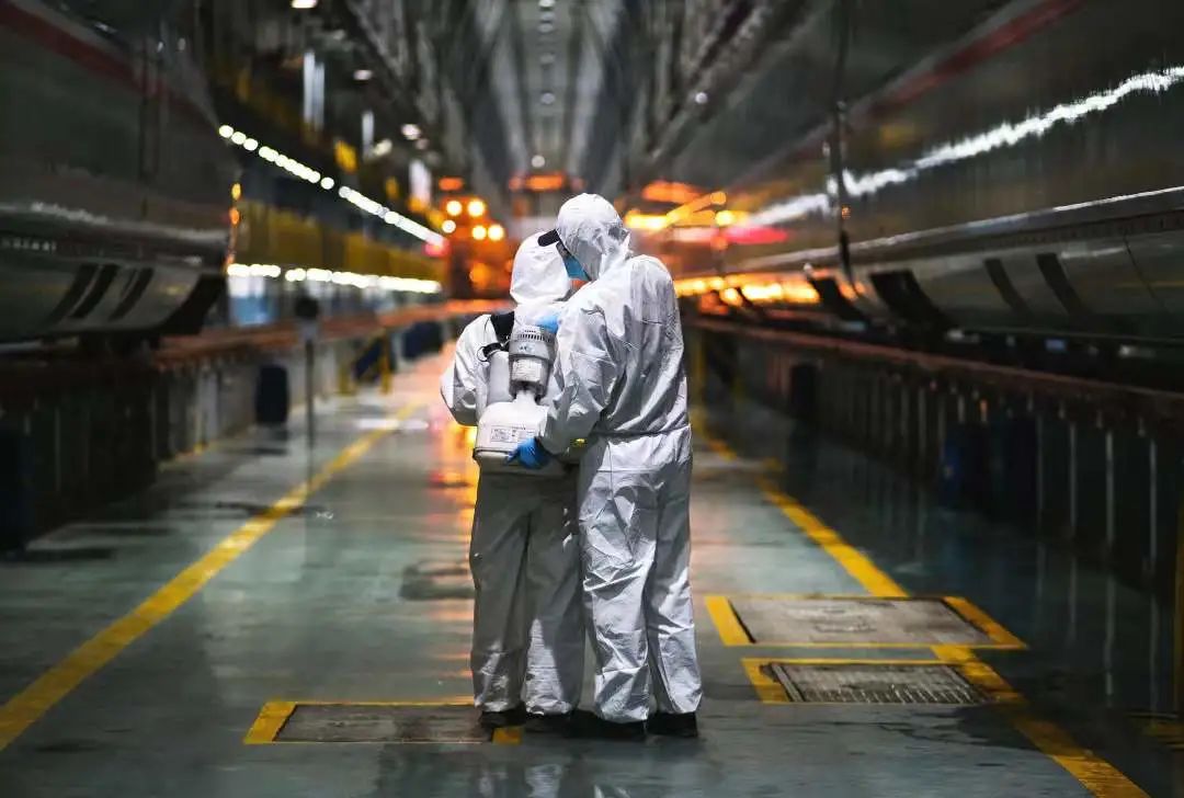 1月22日凌晨2点,广铁集团广州南动车所内灯火通明,广州动车段消毒小分队逐辆对当天要上线运行的动车组,进行全面预防性消毒。他们对车厢内空调、座椅、厕所、门扶手等旅客上部服务设施,以及车底、车侧等部门进行全方位预防消杀。