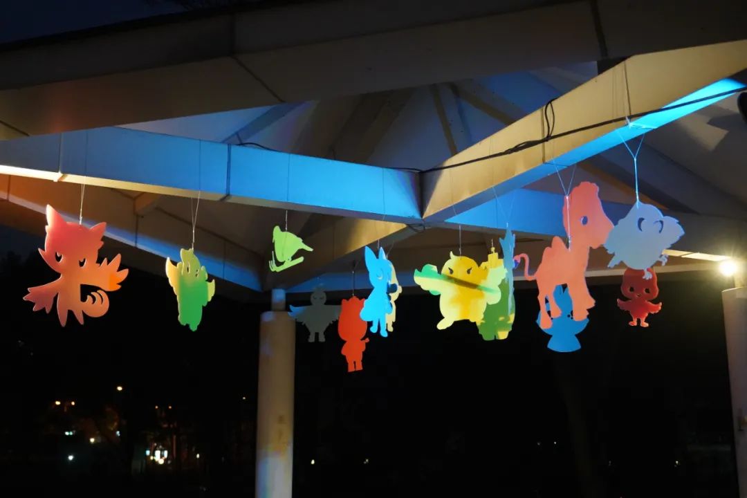 前不久,万里社区开展IP征集活动并选出了最受欢迎的万里形象。此次灯光展活动中,“公众参与,一起共创”的生动画面便在作品展示的凉亭中上演。不少社区居民、艺术机构参与了IP的设计,艺术家李家曦利用亚克力板、反光膜、LED灯等材料进行了再创作,共同完成“万里IP好邻居”作品。在这一过程里,居民艺术家共同创作、碰撞灵感,在有广泛寓意的作品理念中描绘万里现状、畅想万里未来。