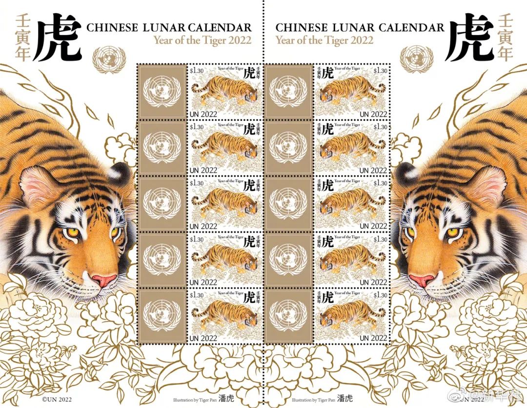 ▲联合国邮政管理局21日在纽约发行中国农历壬寅虎年特别版邮票版张,庆祝中国农历新年的到来。