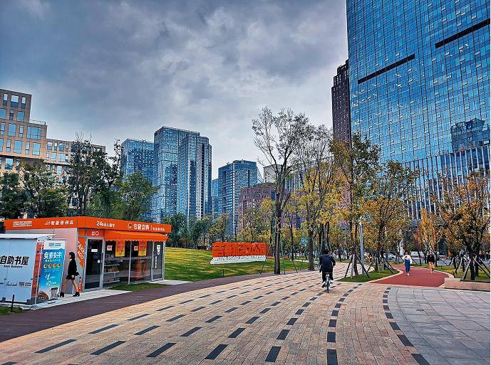 如极富人性化的景观和社区绿道的吉泰路,高新区吉泰路沿线遍布高新产业,为回家路上的人提供了优美舒适的休闲空间,同时植入咖啡店、花店、书店等生活设施,优化空间页面的同时,丰富了群众的生活品质。