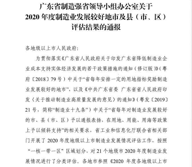 原标题:《赞!云浮这两个地方被评为广东省2020年度制造业发展较好县(市、区)》