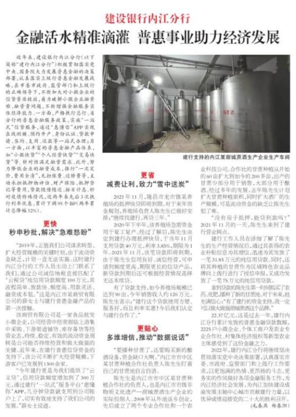 原标题:《【回眸2021】建设银行内江分行:金融活水精准滴灌 普惠事业助力经济发展》