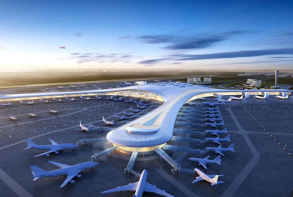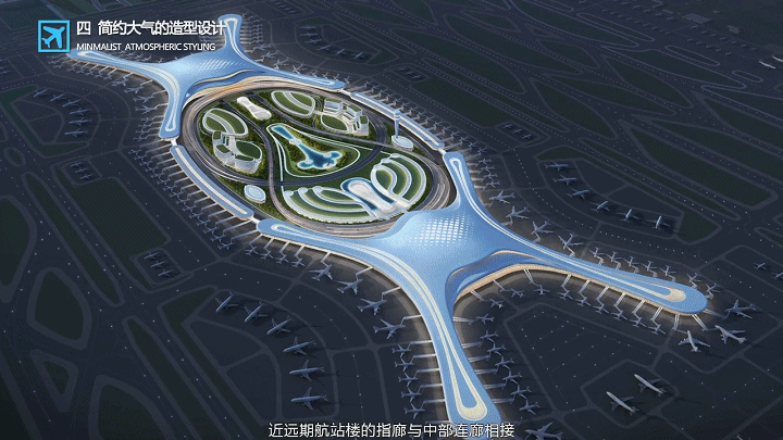 航站楼以“鼎立天地 丝路金河 如意飞天”为设计理念