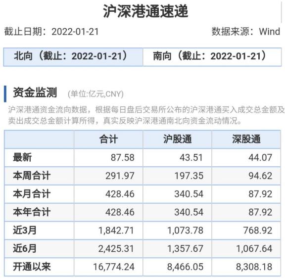 数据显示,北向资金本周合计净流入A股291.97亿元,1月整月合计净买入428.46亿元。