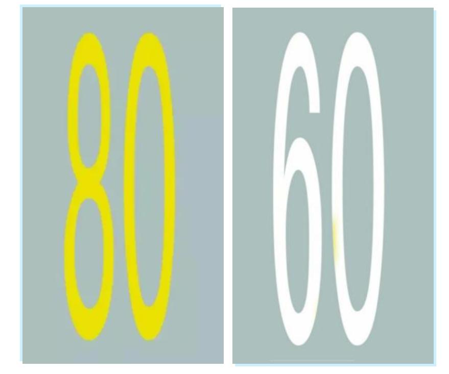 如下图所示,“黄高白低”,表示此路段最高限速80km/h,最低限速60km/h。
