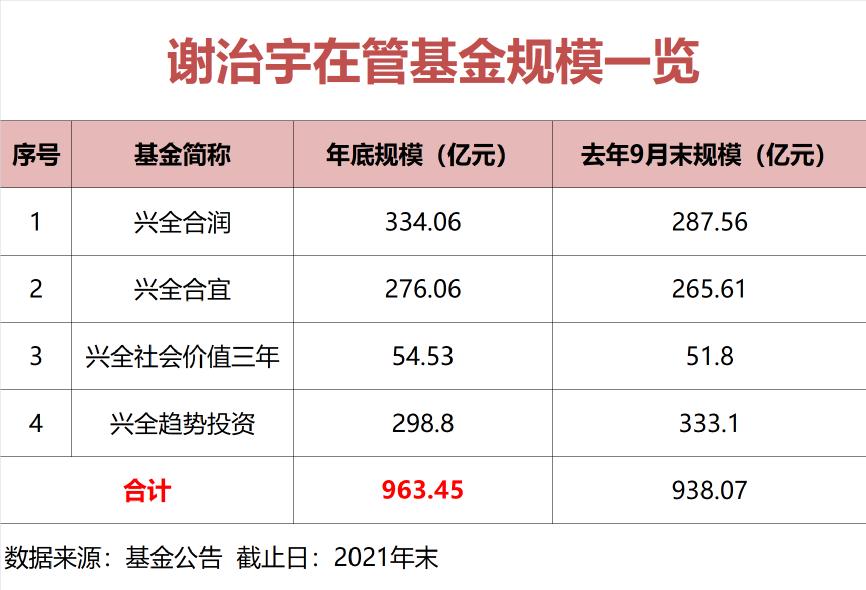 截至去年末,谢治宇在管基金总规模为963.45亿元,规模在四季度逆市上涨25亿元,目前也是向千亿体量发起冲锋的基金经理。