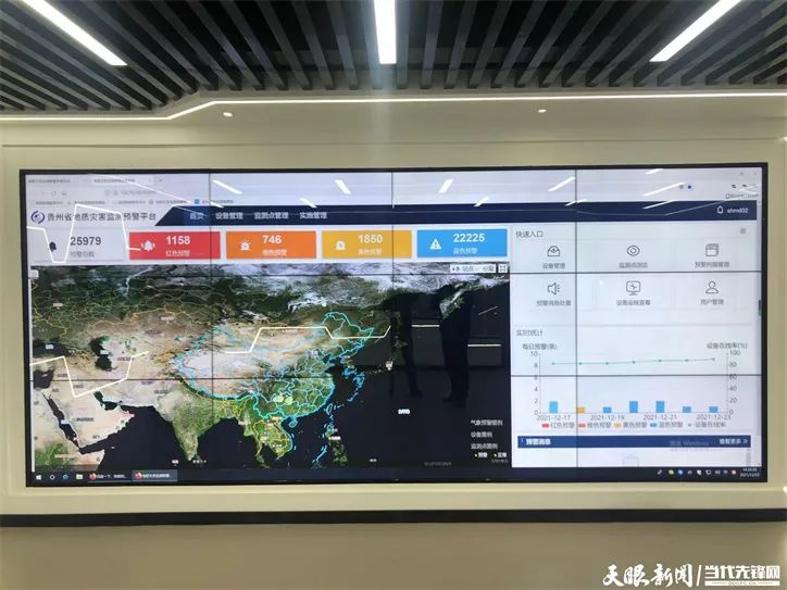 贵州省北斗星防灾应用大数据创新中心展示中心内,贵州省地质灾害监测预警平台实时显示着全省地质灾害方面相关数据