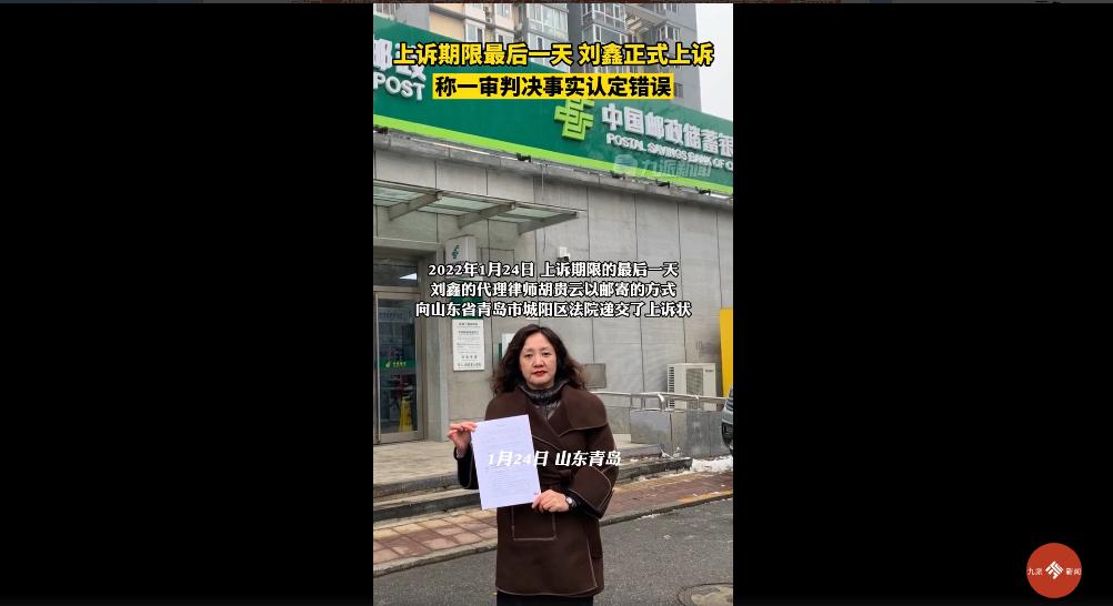 1月24日,上诉期限的最后一天,刘暖曦(原名:刘鑫)的代理律师胡贵云以邮寄的方式,向山东省青岛市城阳区法院递交了上诉状。