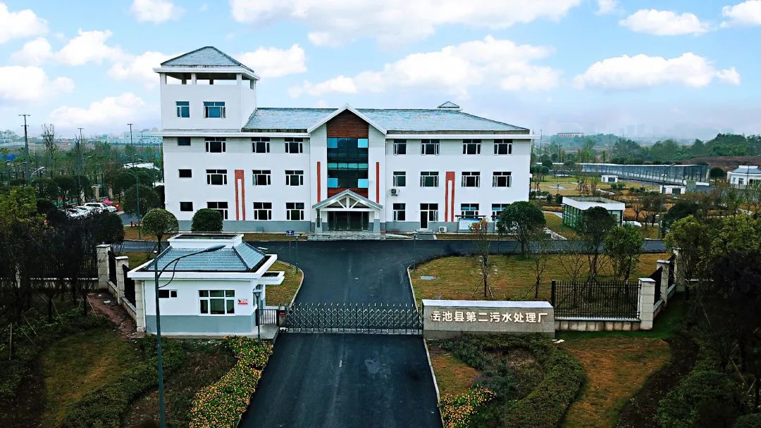 岳池第二污水处理厂项目位于四川省广安市岳池县九龙镇胡家岩村,按照“花园式工厂”设计建筑造型,主体构筑物、综合楼的外观设计突出文化底蕴,采用中式建筑风格,不仅实现了整体环境效果的美观,也满足了环境保护要求。项目采用花园地埋式修建方式,设计理念超前,污水处理的主要构筑物均建设于地下;地上按照城市公园标准打造,修建集花园景观、运动场所、休闲场所等于一体的开放式公园,配备了篮球场、羽毛球场、座椅等设施。建成后污水处理厂不仅极大地改善了当地周围水体环境,同时有效缓解了当地公共娱乐文化设施匮乏的状况。